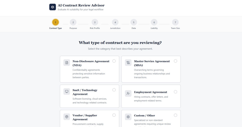 a decision-support tool that helps lawyers sanity-check AI contract output before relying on it.
