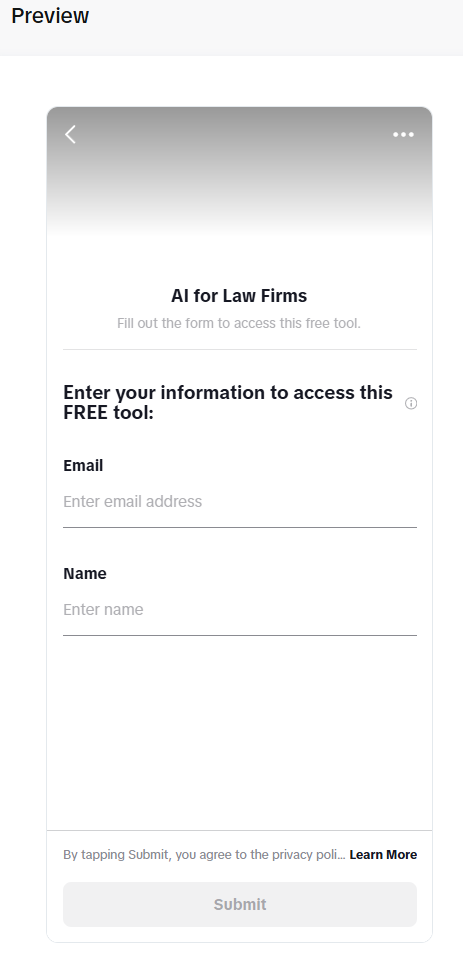 Instead, I used TikTok’s Instant Forms and then showed the tool on the thank-you page.